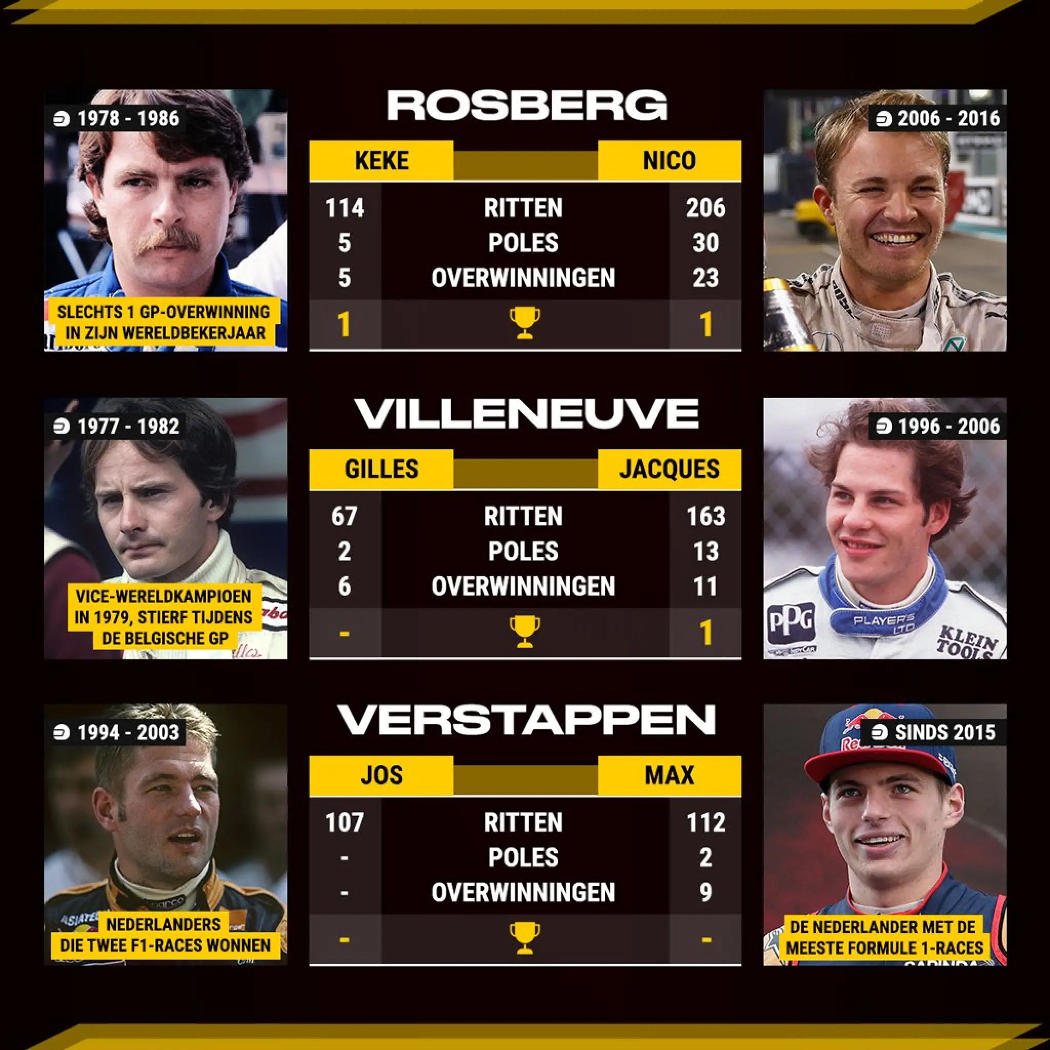 Er is op dit moment al een zoon van een voormalige F1-coureur die momenteel één van de grootste talenten in de Formule 1 is. Max Verstappen trad op 17-jarige leeftijd in de voetsporen van zijn vader (Jos Verstappen) en was de jongste coureur in de geschiedenis van de Australische Grand Prix. Na slechts vier races in 2016 verhuisde Verstappen van Scuderia Toro Rosso naar Red Bull Racing, won de Nederlander zijn eerste race en werd hij zo de jongste GP-winnaar aller tijden. Met 9 GP-overwinningen doet hij op 23-jarige leeftijd al beter dan zijn vader. Vader en zoon Verstappen vormen samen het meest succesvolle Nederlandse F1-duo.