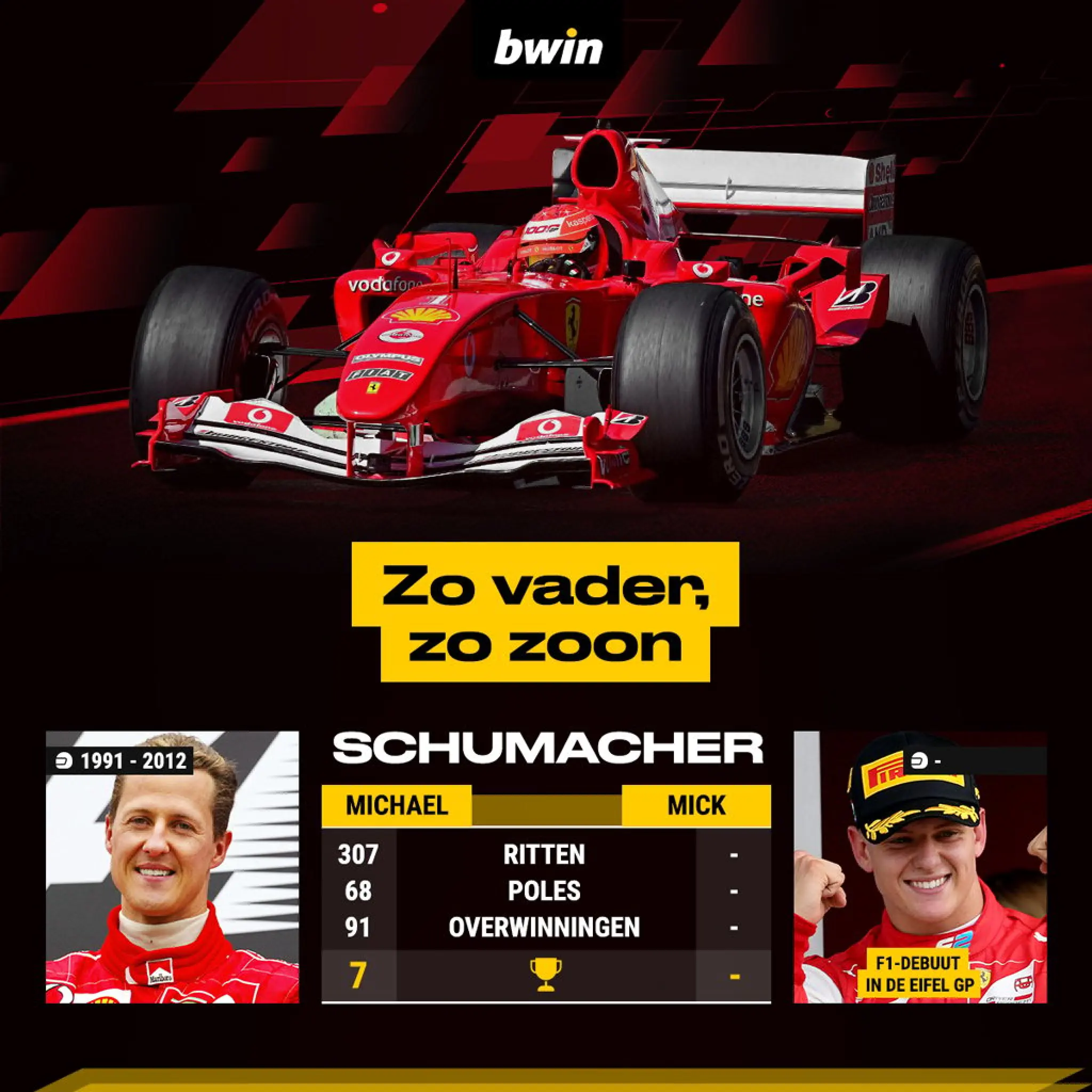 Mick Schumacher maakte onlangs zijn debuut in de koningsklasse en elke Formule-1 fan was ongeduldig om hem voor de eerste keer aan het werk te zien. De jonge Schumacher heeft natuurlijk grote schoenen om te vullen aangezien zijn vader Michael Schumacher een echte legende is. In de lange geschiedenis van de F1 is het echter niet de eerste keer dat een zoon in de voetsporen van zijn vader treedt. Bwin blikt daarom terug op enkele succesvolle vader-zoon-duo’s in de geschiedenis van de sport.