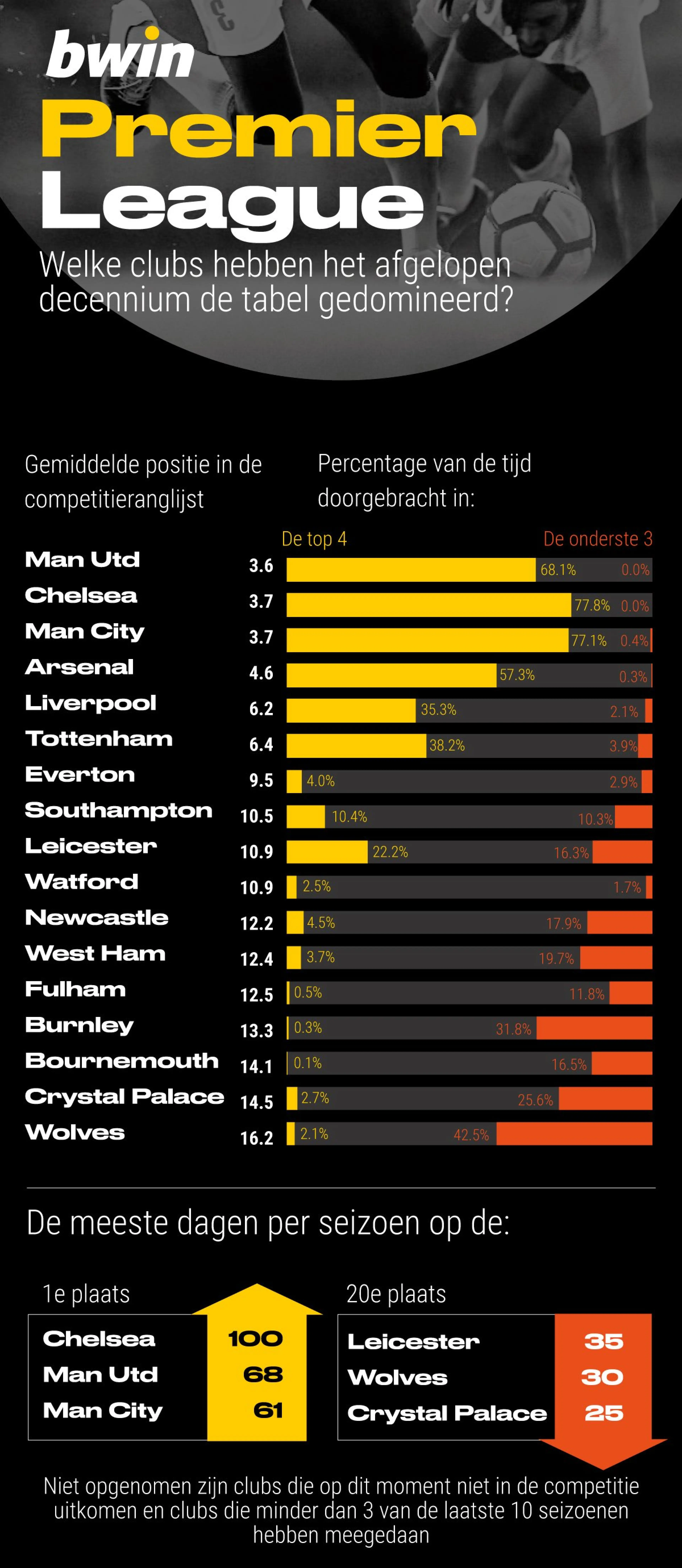 Analyse: welke clubs hebben het afgelopen decennium de tabel gedomineerd?